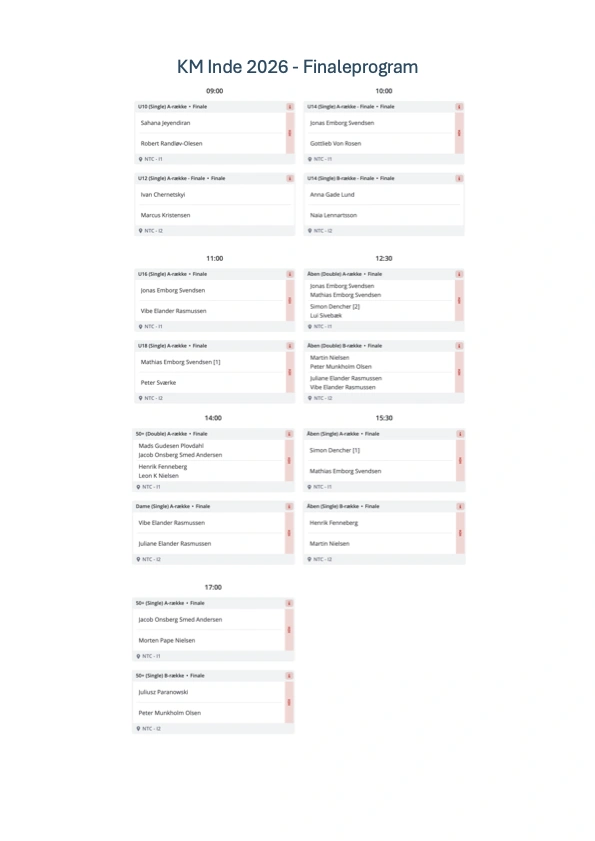 Forventede starttider for kampene i alle rækker kan ses ovenfor eller via dette link hvor resultaterne af kampene løbende opdateres.