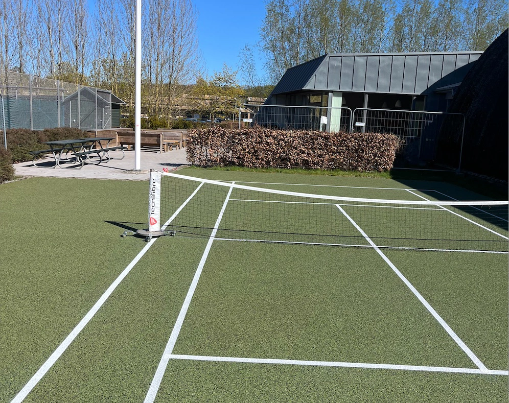 Der er opsat et "mobilt" mini-tennisnet, som let han manøvreres ud på banen, når man har lyst til at spille.