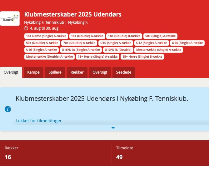 Din tilmelding er - hvis muligt - mappet til din profil i DTF's Tournament Software, så resultaterne fra klubmesterskabet bliver tilskrevet din konto, og dermed tæller med til din WTN-ranking (ITF's globale spiller-rating, som du kan læse mere om her).